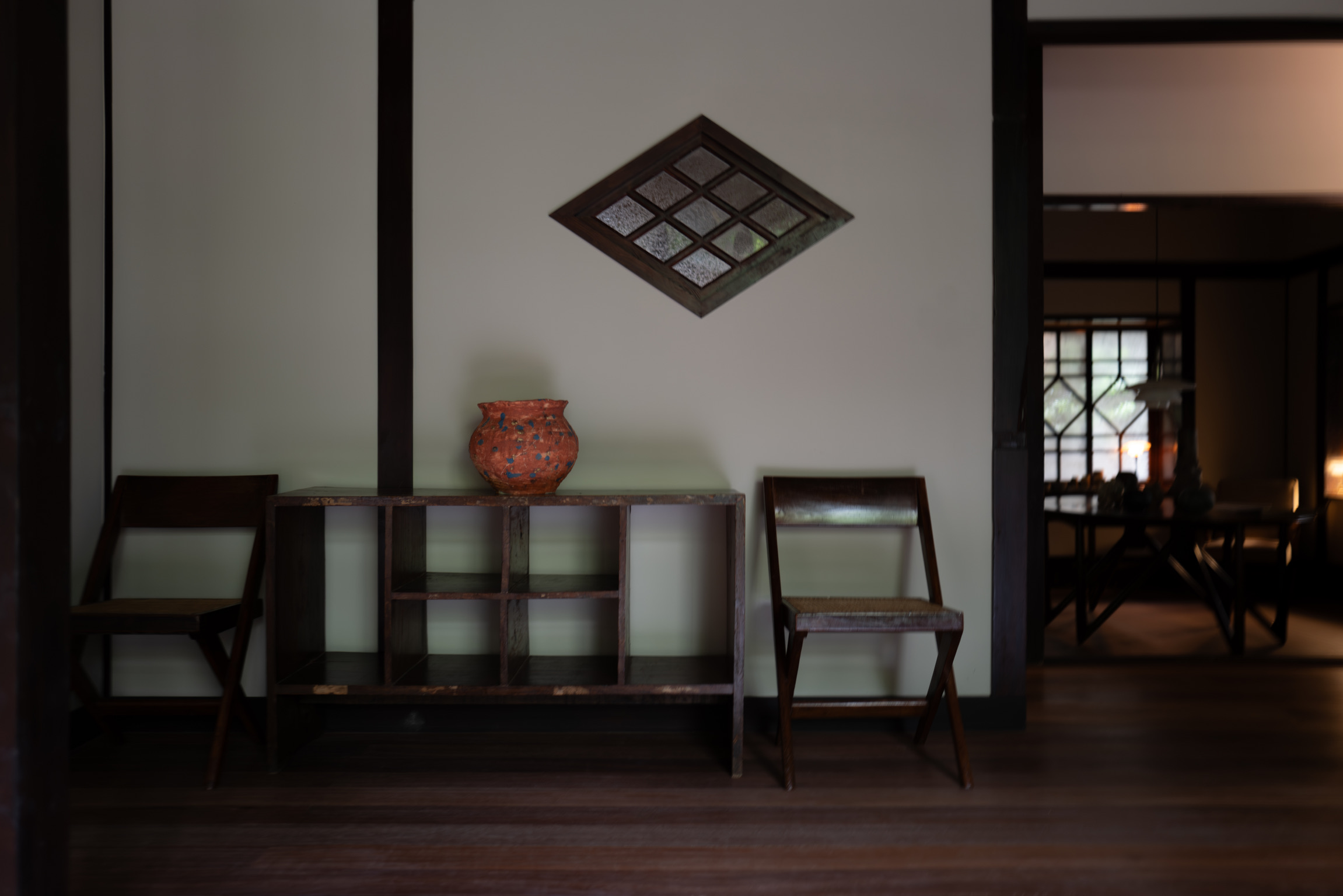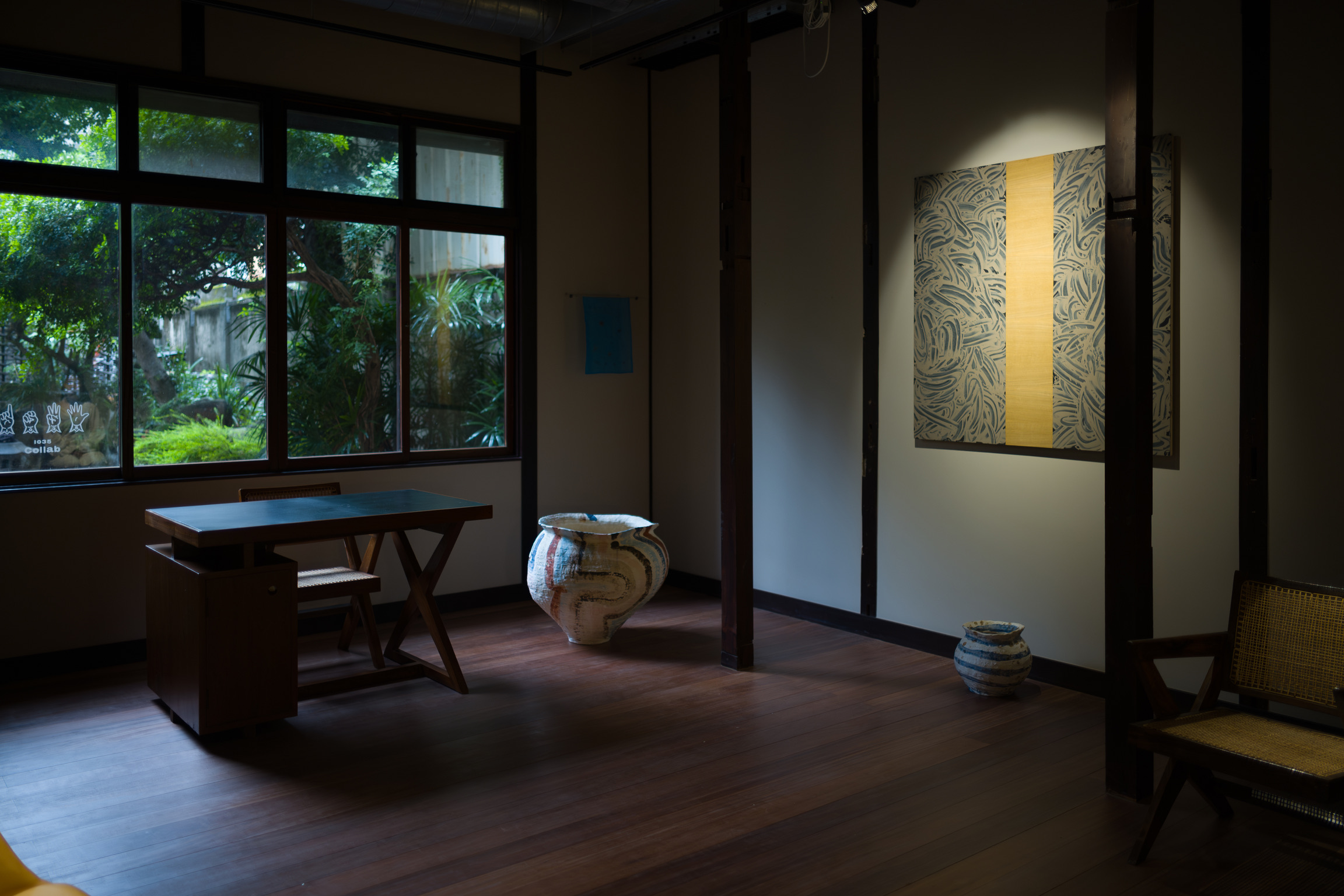 展覽空間特別選址「 1035 Collab 」,結合空間原始老屋隨著歲月層層堆疊的韻味,以及改建後作為文化據點創造的有機生態,各品牌進駐後的嶄新氣象與碰撞出的火花,與《 Touch Grass 觸草》透過藝術作品結合自然的調性契合。空間中陳列的中古傢俱來自傢俱藝廊 GFG ,選用 Pierre Jeanneret、Finn Juhl 的設計作品,讓展覽能夠實際走入生活。