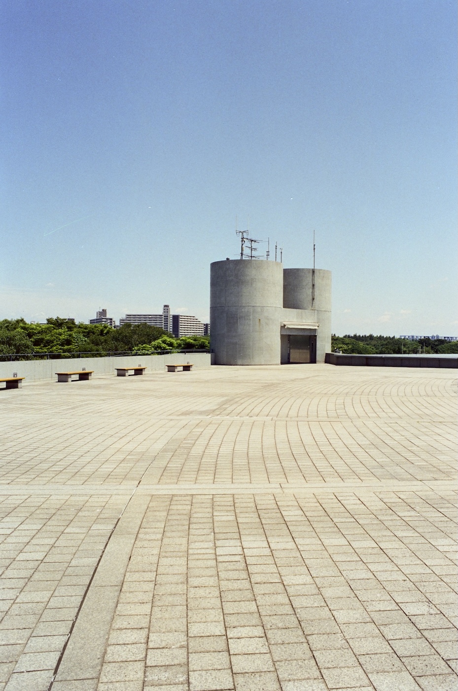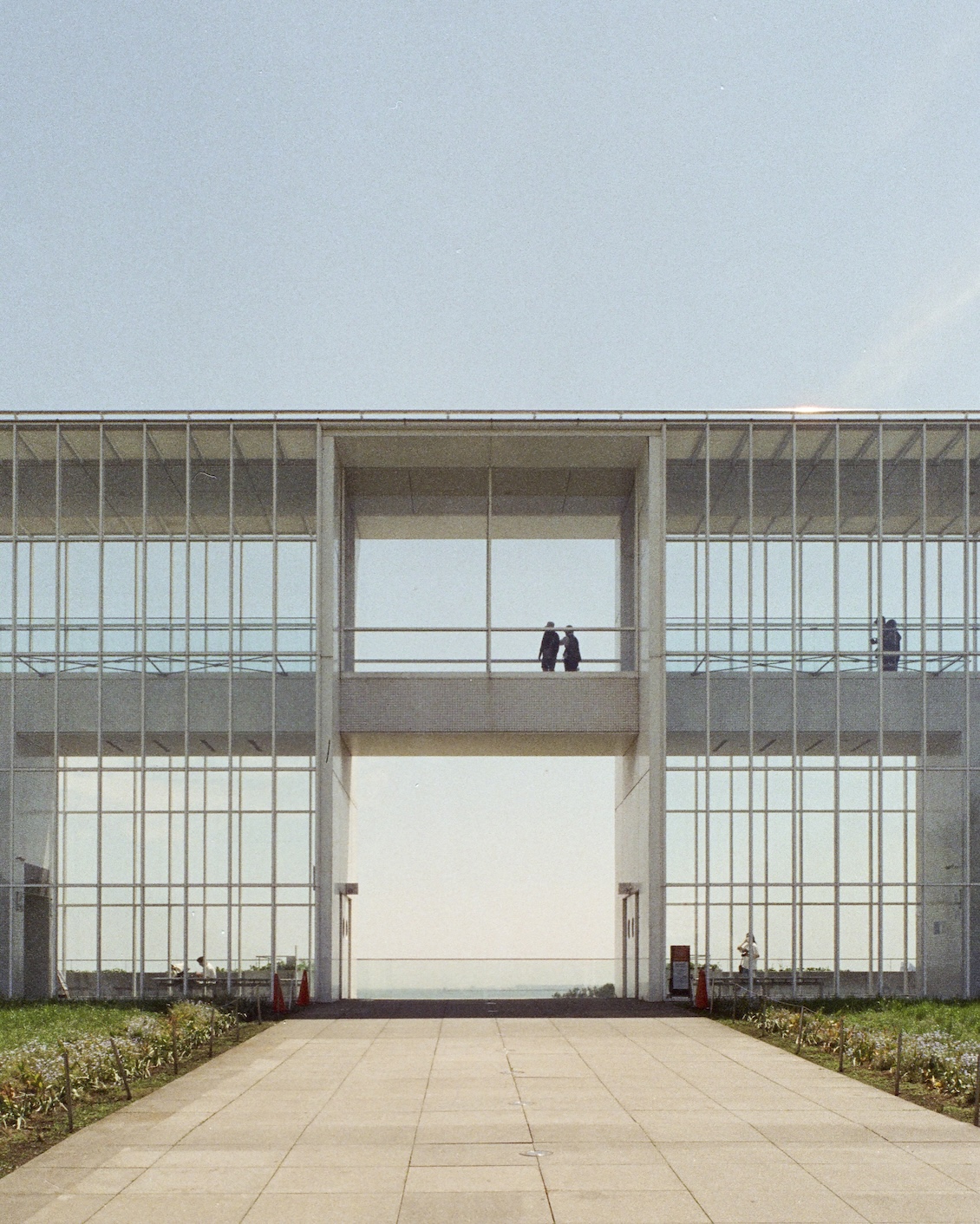 穿越葛西臨海公園的廣場,腳步若是選擇直行,就會在不知不覺中抵達觀景台。那是一個長方形量體的透明盒子,內部設計讓人可以任意挑選上升的方式,透過樓梯、電梯,或是一條緩慢傾斜的長坡。而當身體隨著緩坡一寸寸往上,眼前的景象也隨之轉換,地平線漸漸抬升到與海平面重疊,彷彿整座城市暫時退到遠方,只留下東京灣沿岸的浩瀚藍色作為視野的唯一主角。
