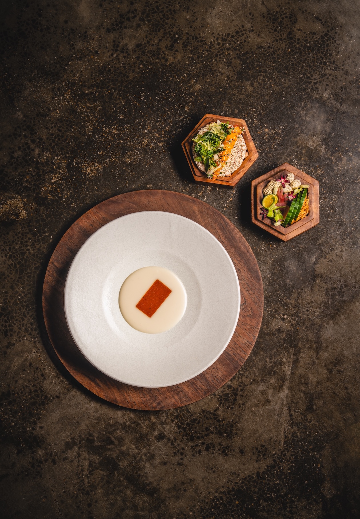 Nouri 成立於 2017 年,餐廳位於新加坡唐人街的 Amoy Street,空間主要由主廚料理台延伸出一張圓潤長桌,餐廳設定了限量的座位,視線開放卻讓人感受到沉穩安靜。餐點由七道式 Crossroads Menu 呈現,也提供平日限定的兩道與四道菜選項。食材的來源、料理的精神、食物的擺放,都成為一種身體知覺上的文化考古。而 Nouri 這個名字源自拉丁文「nourishment」,是一種介於滋養與記憶之間的感知狀態。