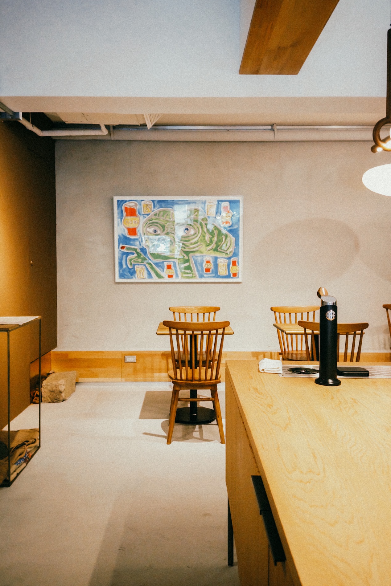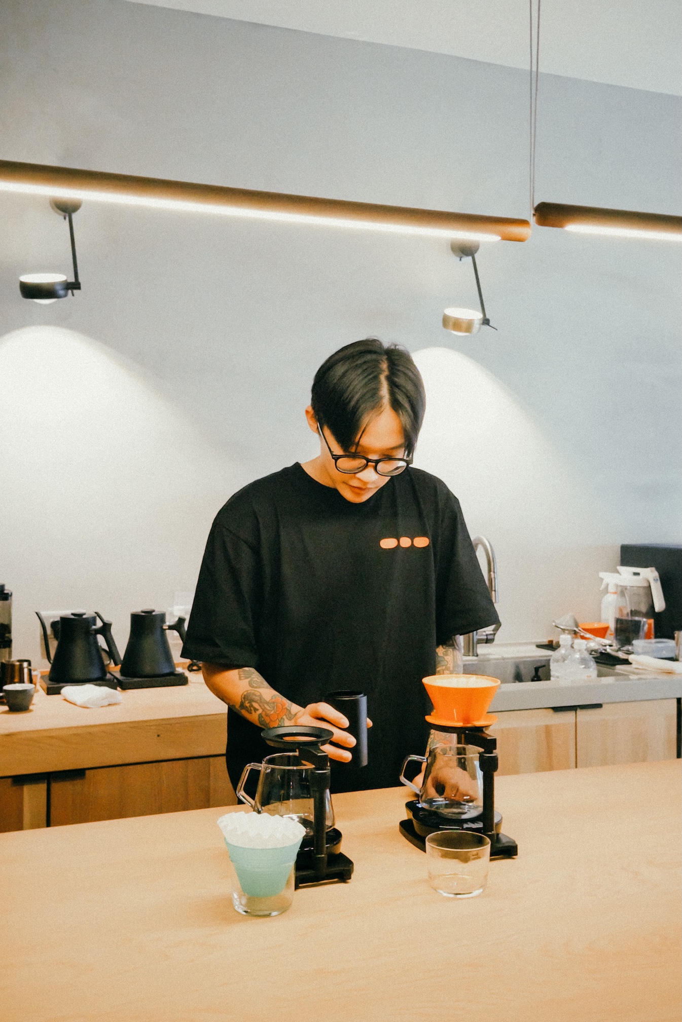 在餐飲領域耕耘多年的三位創辦人,齊心打造從咖啡生豆挑選與烘焙、沖煮與萃取,到品飲體驗都能在一間店裡完成的空間。全店以門口透明櫥窗構築的半開放烘豆空間為起始點、佔據空間中心的沖煮吧台為中介點,以及店內展示與座位空間為最終站——讓來客能親眼目睹咖啡豆的烘焙過程,再透過手沖、濃縮、奶咖與特調等手法,品嚐到每一支豆子最理想的風味樣貌。消費者亦可以將心儀的咖啡豆帶回家,延展屬於自己的品飲體驗。