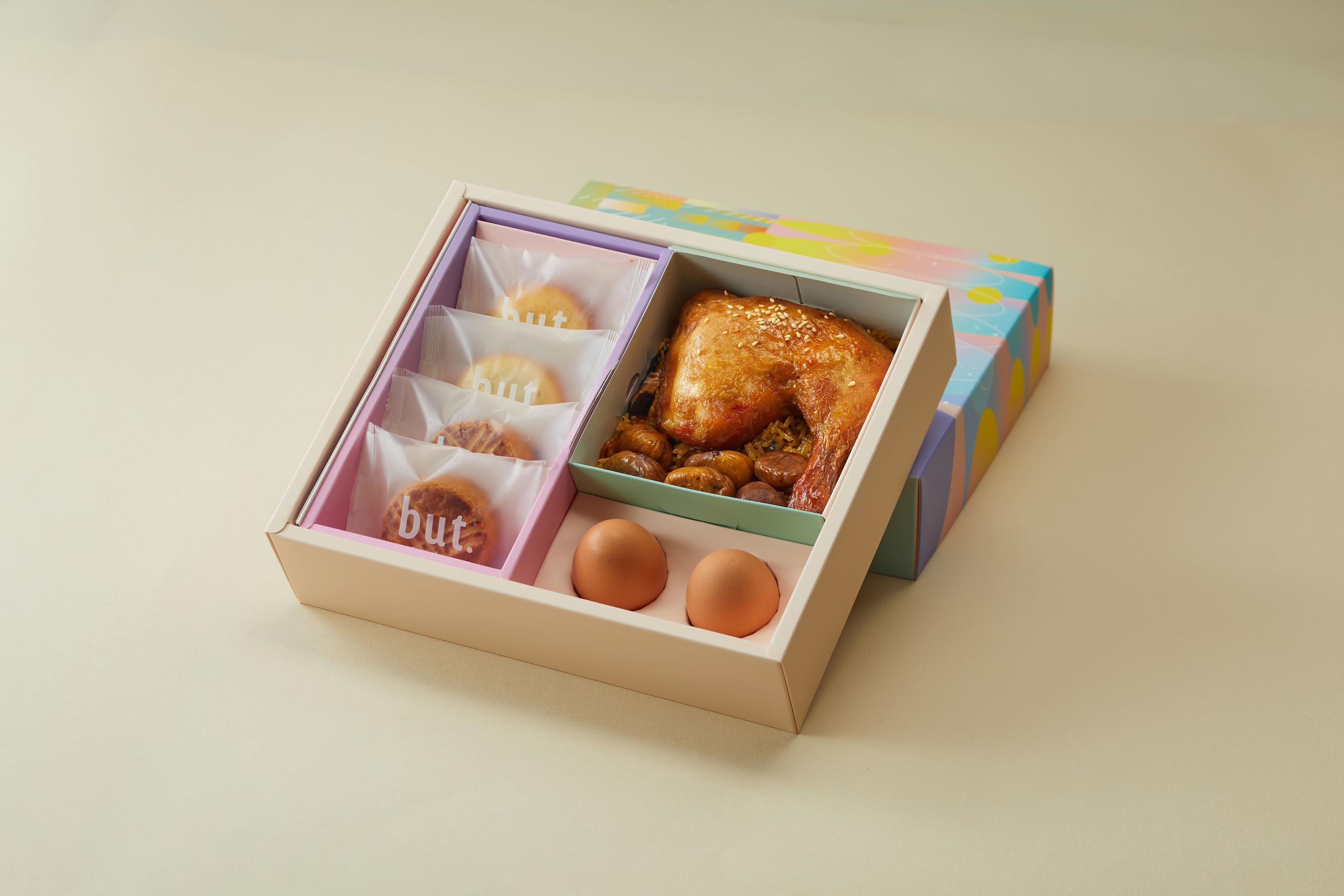 彌月這個詞的根與滿月慶賀相連,米在東亞文化裡象徵著豐收與平安,油飯常被視為分享喜訊的載體。彌月品牌福寶寶以質感作為品牌堅持,特色在於選用上乘食材,結合精緻的工序。在這次禮盒中特別與奶油餅乾品牌「but. we love butter」,雙方共同推出「奇幻新生彌月禮盒」,也特別研發出限定款焦糖爆米花圓餅讓傳統與新潮驚喜相遇。