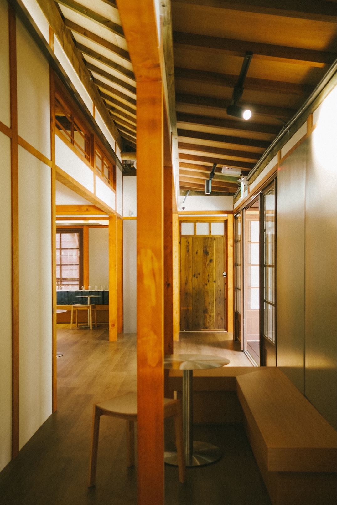 大安旗艦店座落於鄰近「光在錦町」園區,園區原為 1930 年日治時期官舍群,是台北現存規模最完整的日式歷史建築聚落之一。空間以修復如舊為原則,黑瓦與雨淋板立面完整保留,邊側結構與架高地板維持原樣,原有的紙門也全數保留下來。