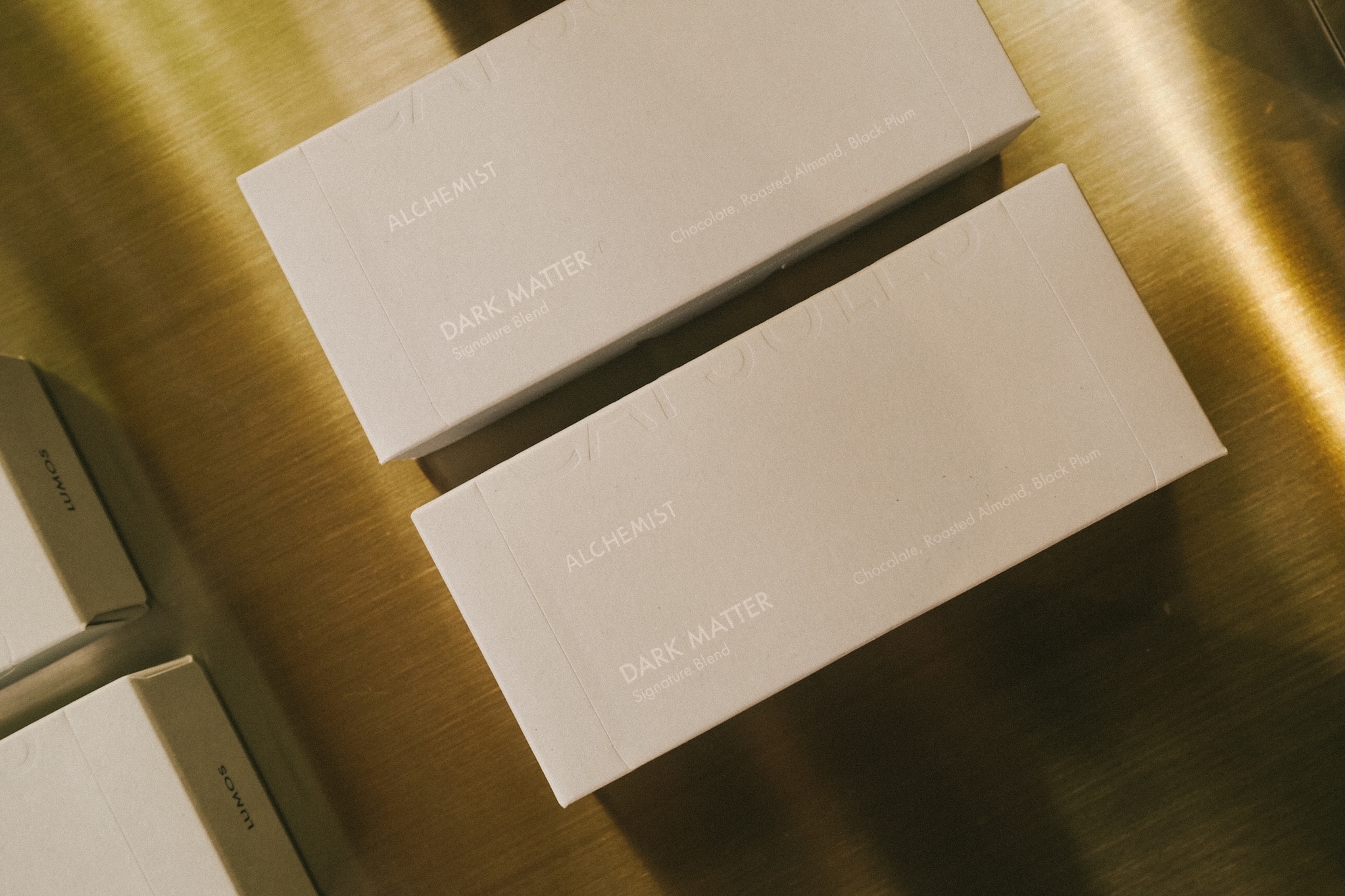 Alchemist 所有咖啡豆都是從新加坡空運來台,他們以三款 Signature Blends 作為風味基礎。第一款 Dark Matter 口感濃郁厚實,以可可與堅果調性為主,結構飽滿;第二款 Equilibrium 著重酸甜比例的協調,風味乾淨順口,是任何時刻都合適飲用的穩定選項;第三款 Lumos 有明顯的明亮與清爽,展現豐富的花果香氣,酸質上則有穿透感。