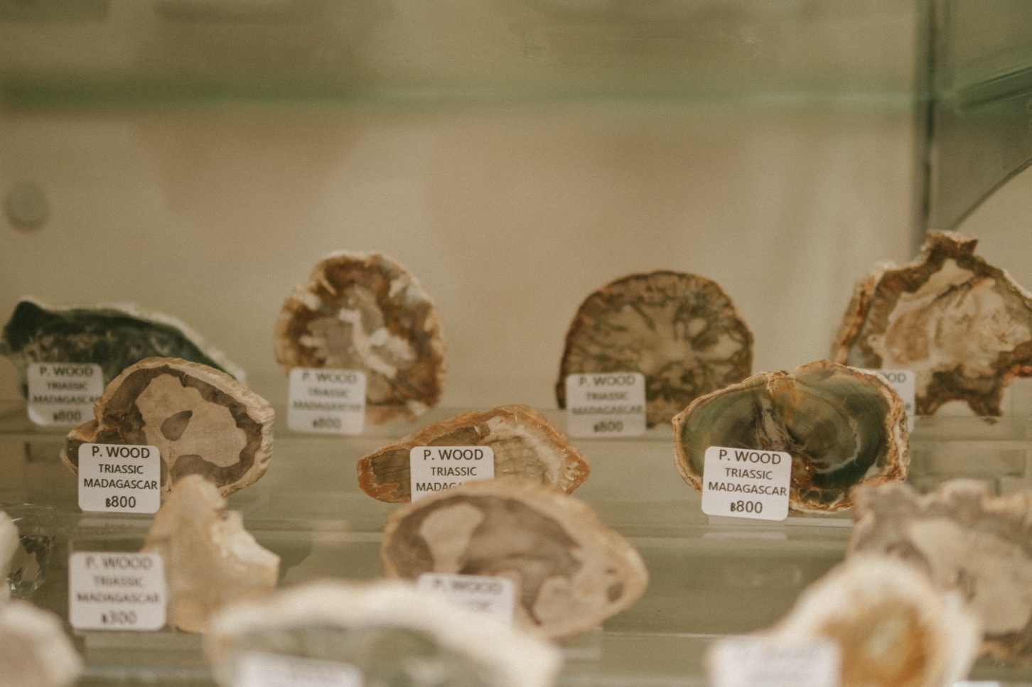 他們也會對某些石頭重新進行切割,因為他們認為很多石頭是在被打開後,有截然不同的美貌。在 House of Gems 可以遇見各種礦石的精美切割面,像是一塊來自泰國的矽化木切片,木頭的年輪紋理完整保留著褐色、米黃、深棕。這是從一棵樹在數百萬年前慢慢被二氧化矽取代之後留下來的東西,在有機物質消失之後,形狀與顏色完整地留了下來。