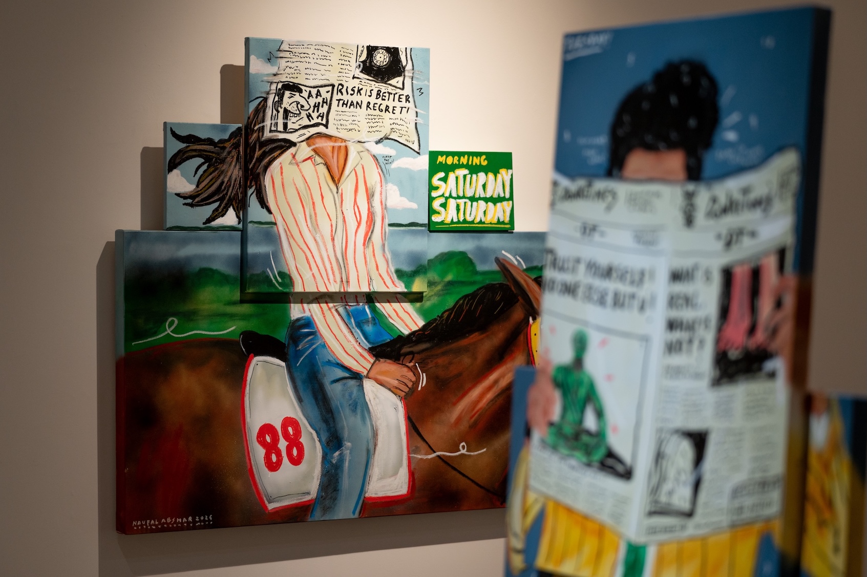 納法爾・阿布沙爾的繪畫風格帶著萬隆這種混搭的歷史底色,政治在他的畫裡換了容器,幽默則是他選擇的媒介,諷刺性的笑聲,使批評得以在不設防的狀態下進入大眾視線。