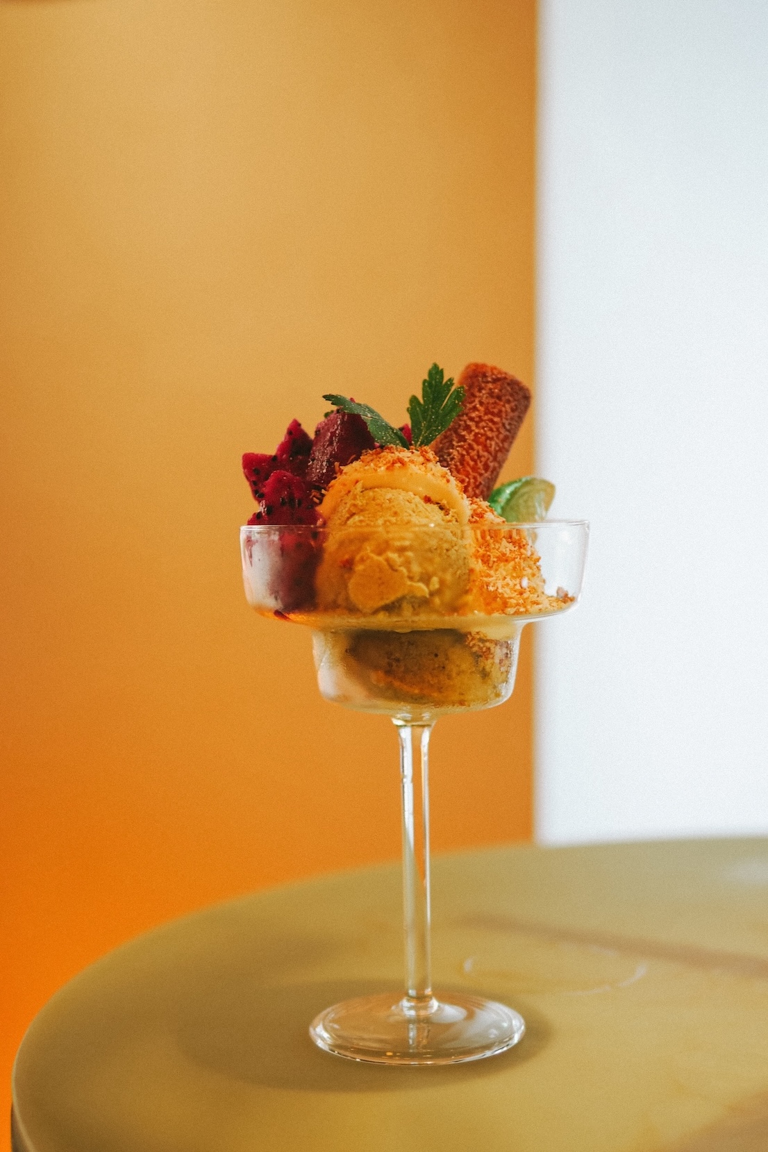 Maison Balzac 的酒杯用來承載液體與香氣,但當甜點進入其中時,杯壁在之中堆疊出顏色與質地,讓人從側面開始閱讀味道的層次,也彷彿為我們打開生活器皿的多用性。裝進了芒果、羅勒、抹茶、白乳酪與椰子花蜜,連帶收進了一段從視覺走向味覺的距離。 生活設計選品店 TINGKO SE...