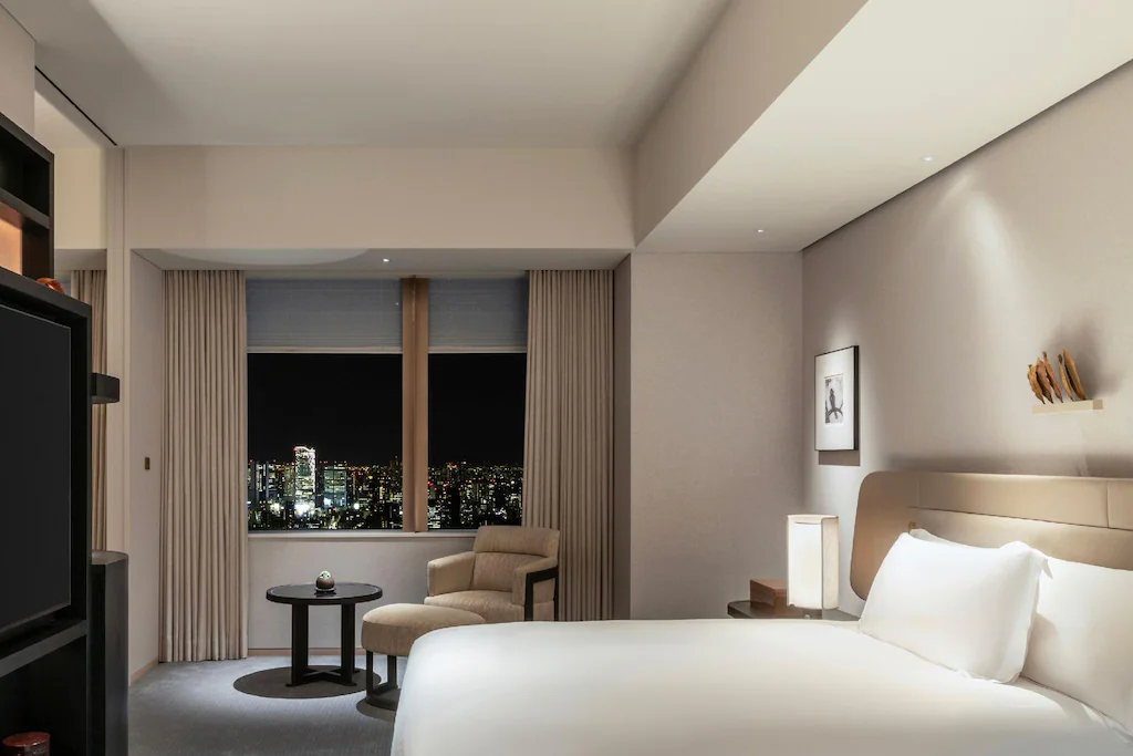 這份懷舊情感,讓東京柏悅飯店以使命般維護原始的設計,替顧客小心翼翼的維持那些完整的記憶體驗,這次飯店重新裝修由巴黎設計事務所 Studio Jouin Manku 主導。設計團隊的工作範圍涵蓋公共空間、客房與部分餐飲區域,方向集中於保留原有動線、比例與視野條件,在這個基礎上更新家具形式、照明配置與表面材質。