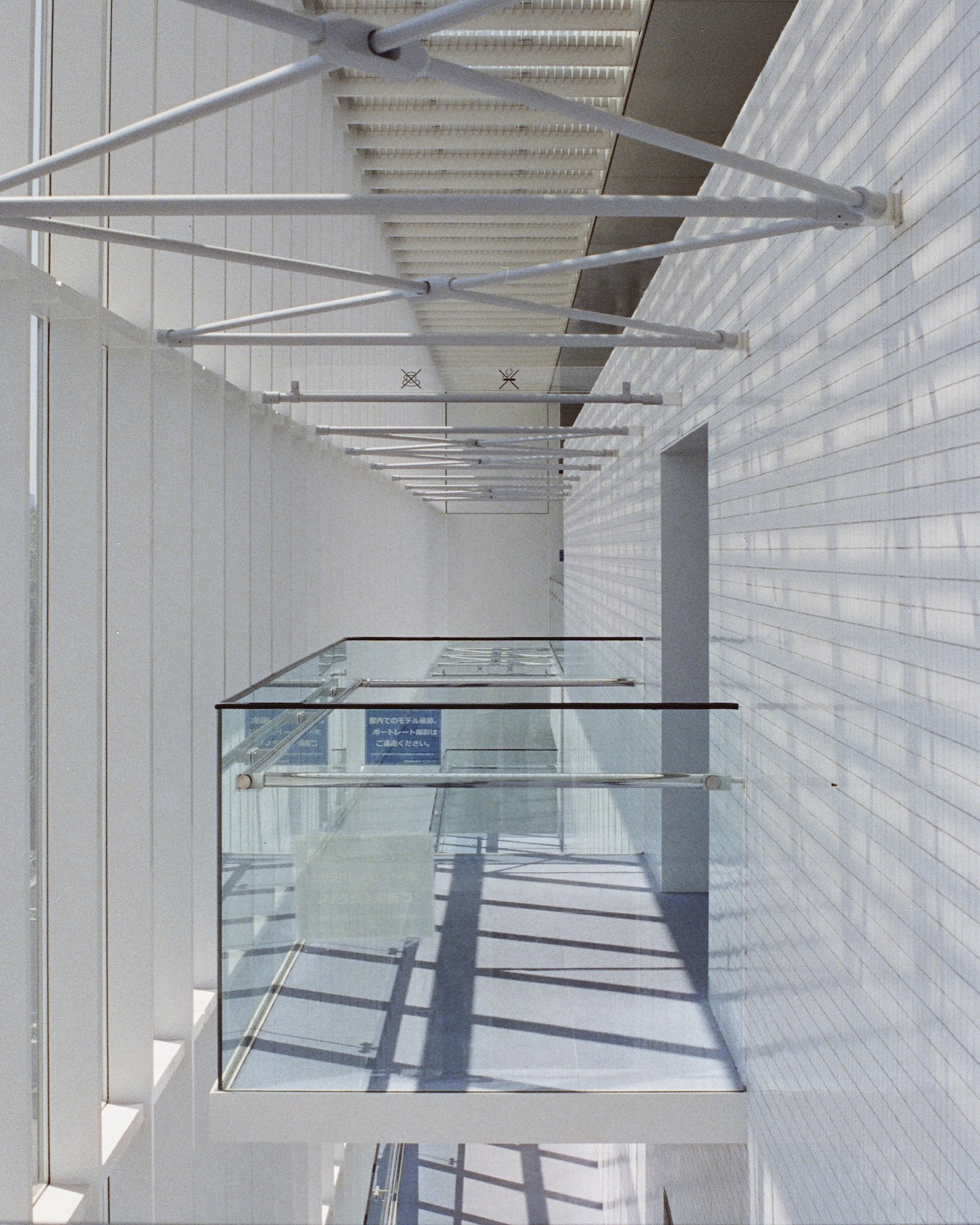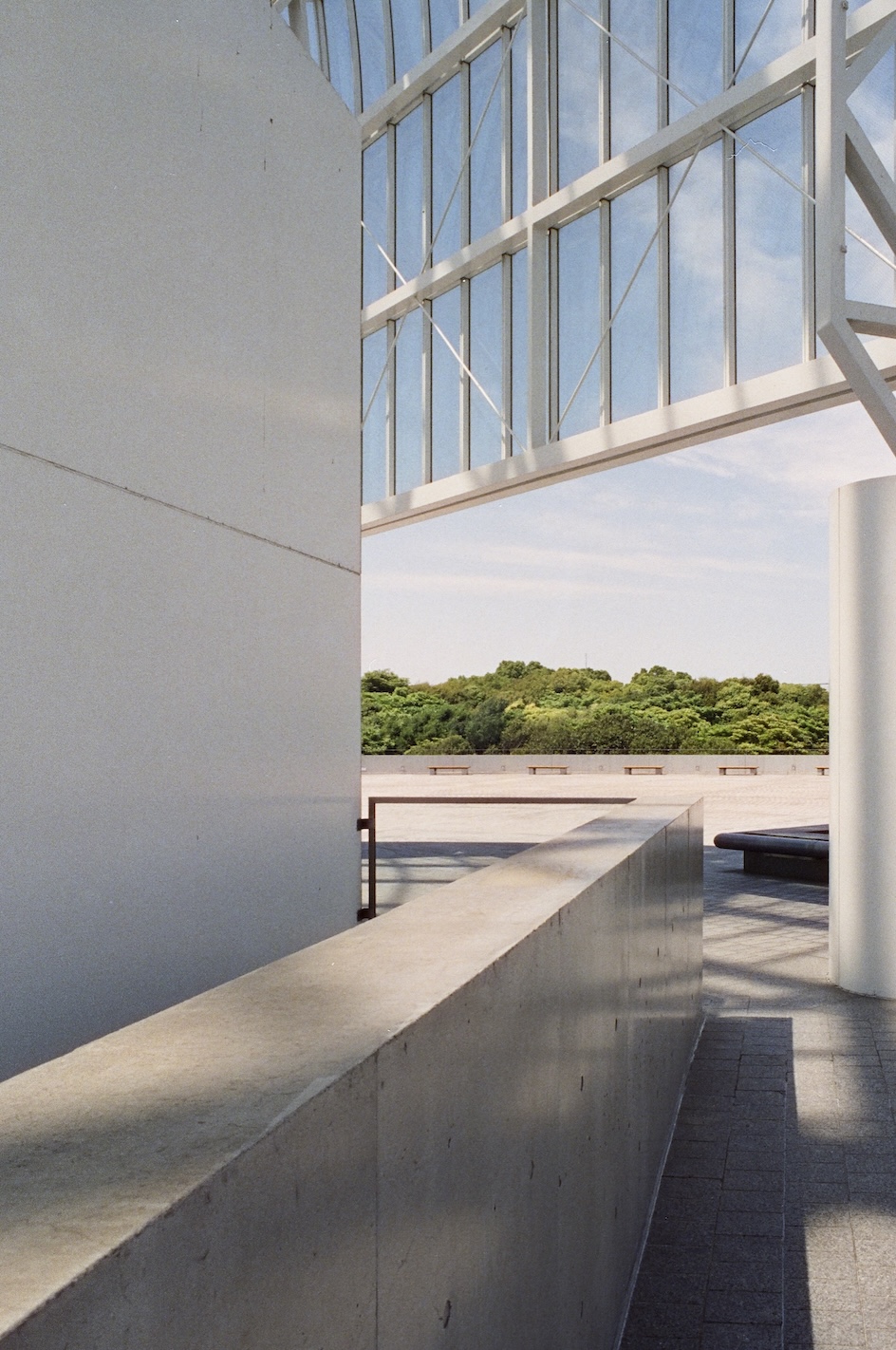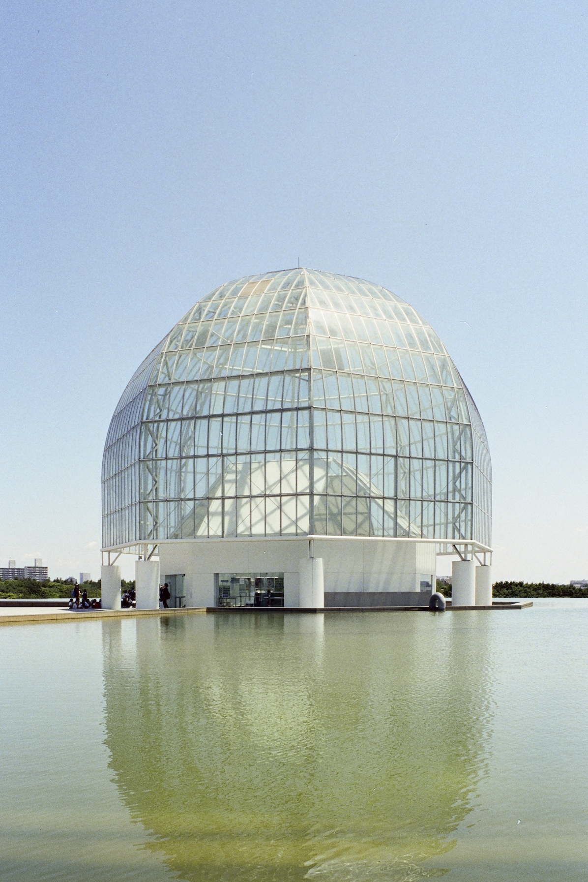 葛西臨海水族園滿足了1980 年代日本經濟高峰的城市規劃想像,一路延伸到今日仍然持續的都市更新計畫,透明外殼映照的不只是海天的分界線,也捕捉著每一個經過遊人身上帶來的當下氣息。天氣晴朗時,窗框切割的光影像是古典建築裡的彩繪玻璃,卻又帶著現代工程的冷冽精確,鋪灑在地板上形成一塊塊閃爍的碎布,令人心底油然而生一種安定的鬆弛。遠處樹叢之間,水族園的透明圓頂隱約浮現,好像另一個時空裡的信號,提醒這片土地同時蘊藏著自然與人工、歷史與當代。