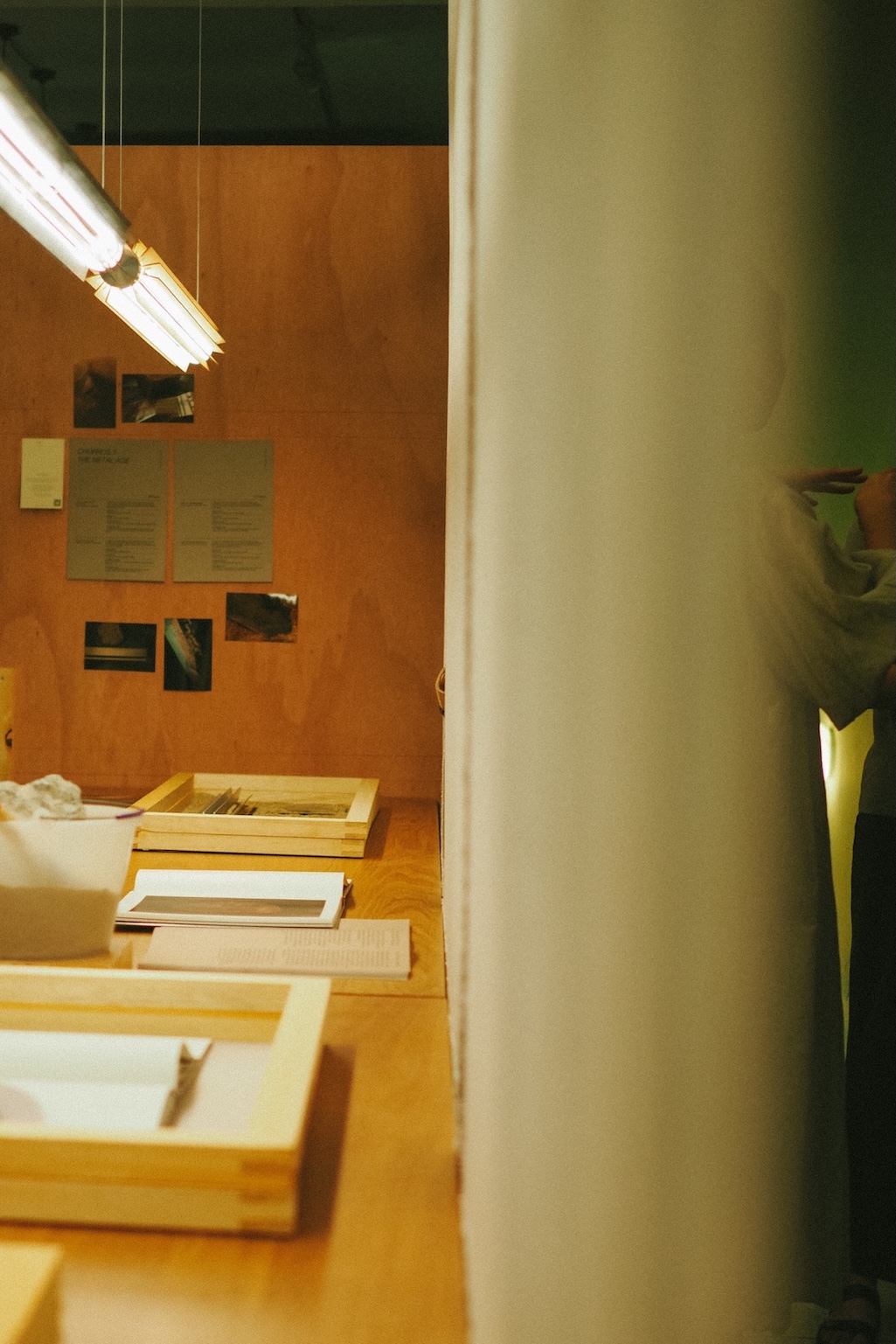 糖蔥系列推出壁燈與立燈版本,擴展了其在空間中的使用方式與形式表現。此次展覽也邀請朋丁創辦人陳依秋參與策展,從書籍出發,回應「金屬時代」的核心概念。展場中書與光並置,當走進其中我們在材質與思想之間游移,開啟一場關於痕跡、記憶與時間的閱讀。