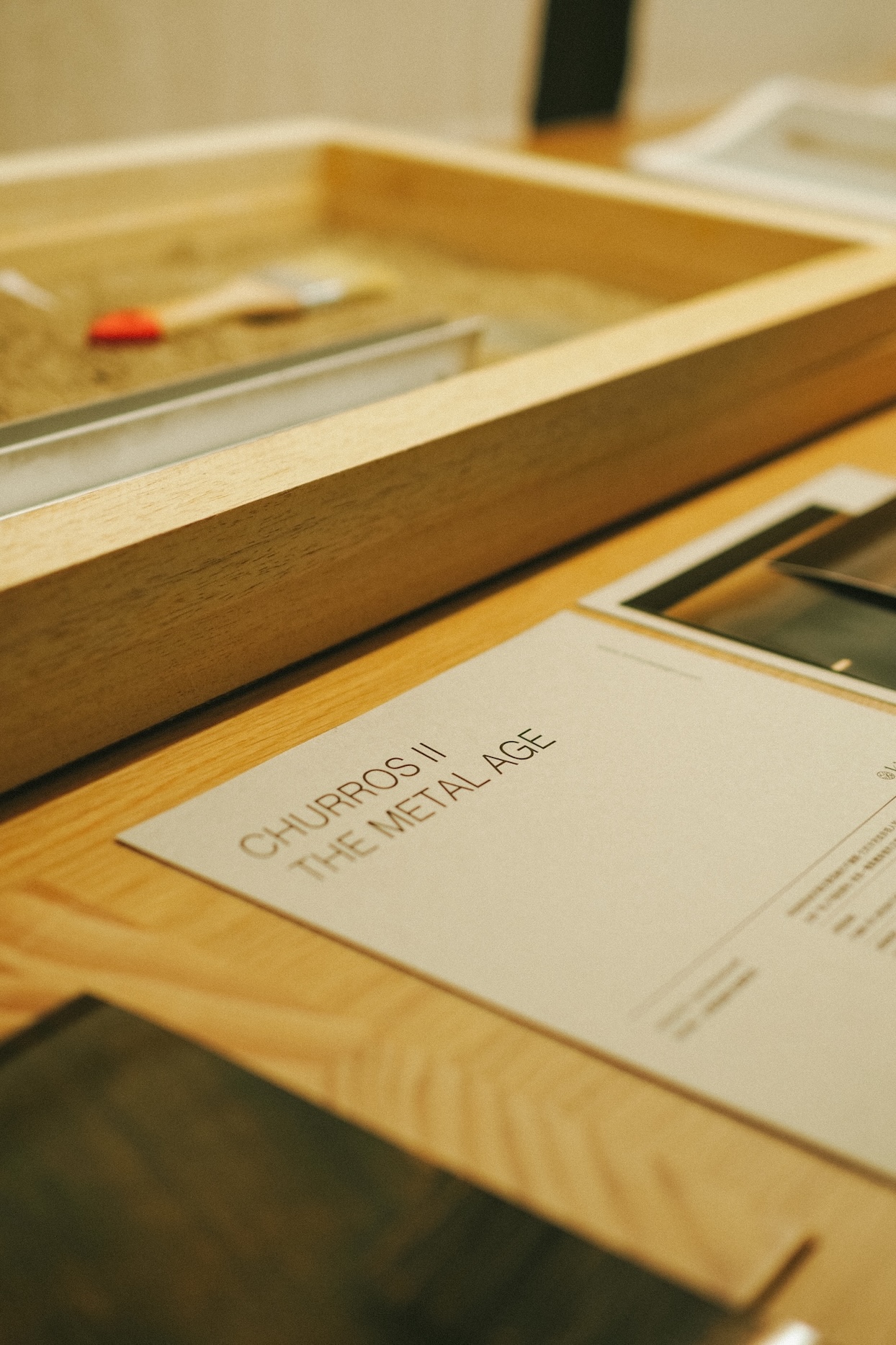 人類無法觸摸時間,卻不斷透過物質為它製造形狀。金屬的誕生,是文明對抗易碎的第一場演化,熱以寧靜的方式穿越礦石,金屬於其中結起一種溫柔的深度,經過熔解與淬鍊才有雛形,在被熾熱摧毀後轉化為堅硬。