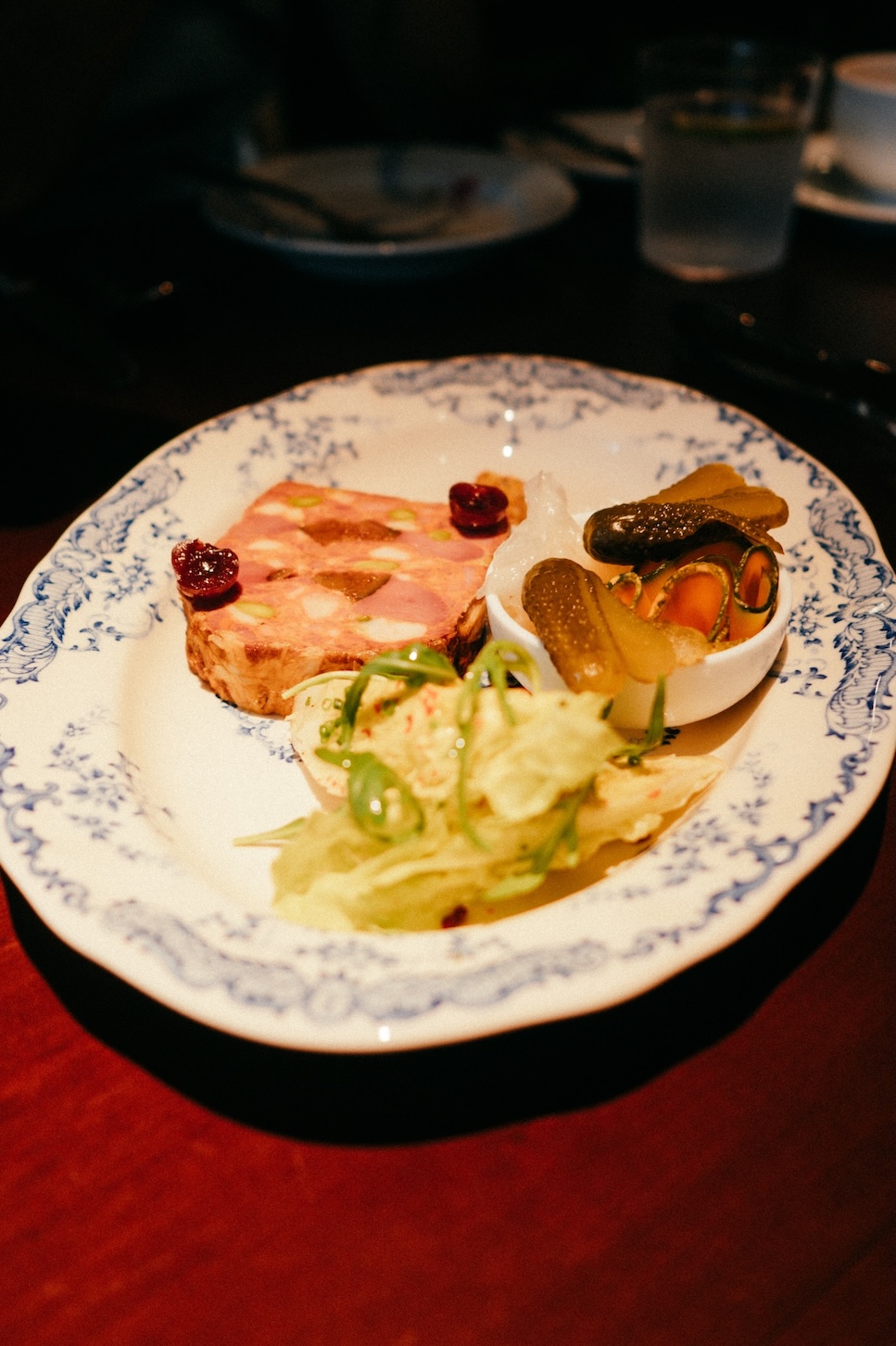 Chaud Doux 以里昂 Bouchon(經典法式小館)為根基,餐點中如 Cake aux Oreilles de Cochon(豬耳蛋糕)、Pâté de Campagne(鄉村肉派)、Bouillabaisse(馬賽魚湯)等品項,都來自法國不同地區之飲食典型,以材料的物理狀態為主軸,配合溫度與時間的控制,在飲食文化中建立更加經典與傳統的保留。