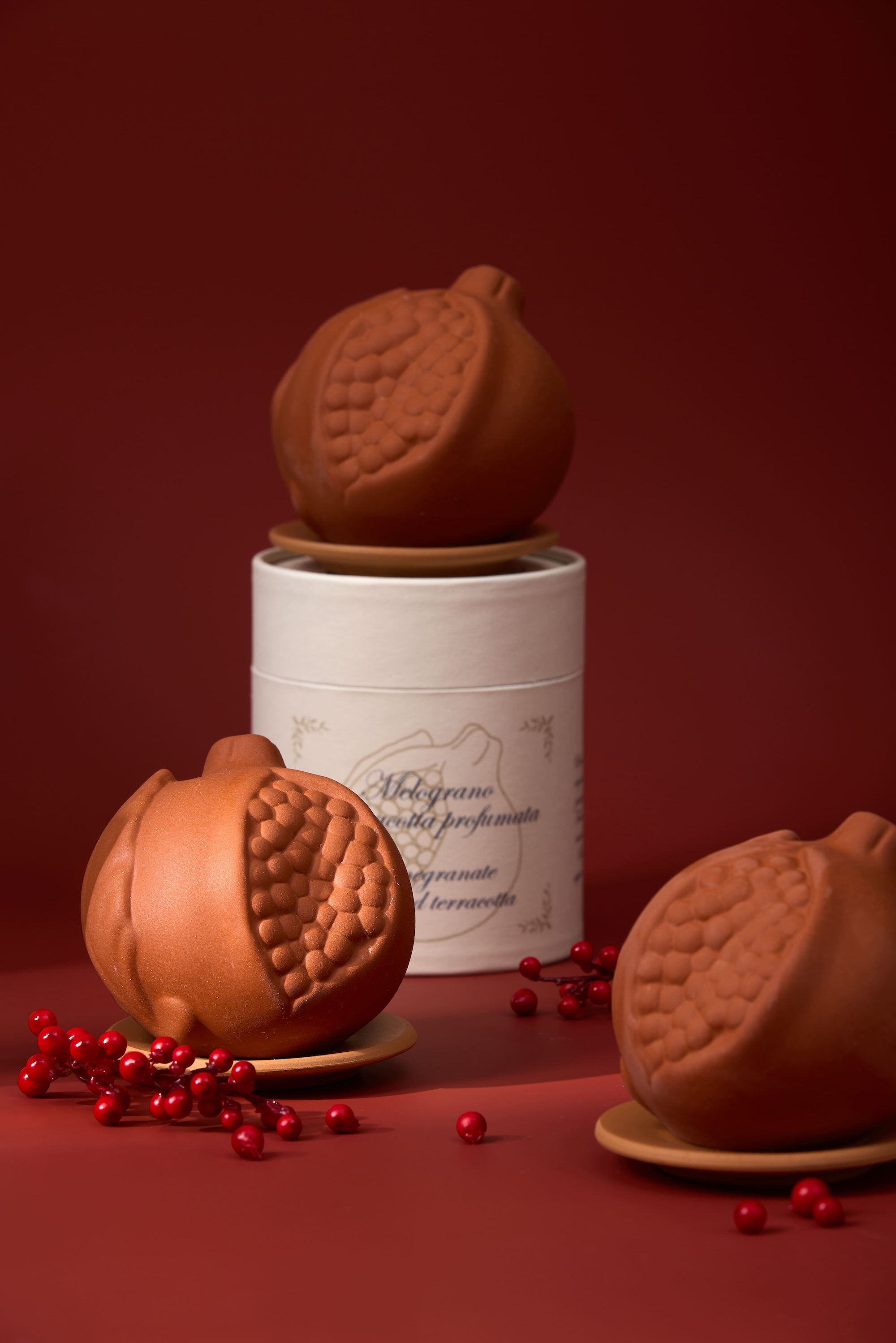 由義大利匠人手工打造的「波斯石榴花手工陶瓷擴香」,選用高溫窯燒定型的陶土,經長時間浸潤精油,使陶瓷自然吸附香氣,並於空間中優雅 、緩慢且持久地釋放。沉穩的赤陶色澤,如大地般溫潤厚實,為居家注入象徵富足與圓滿的安定氣息。