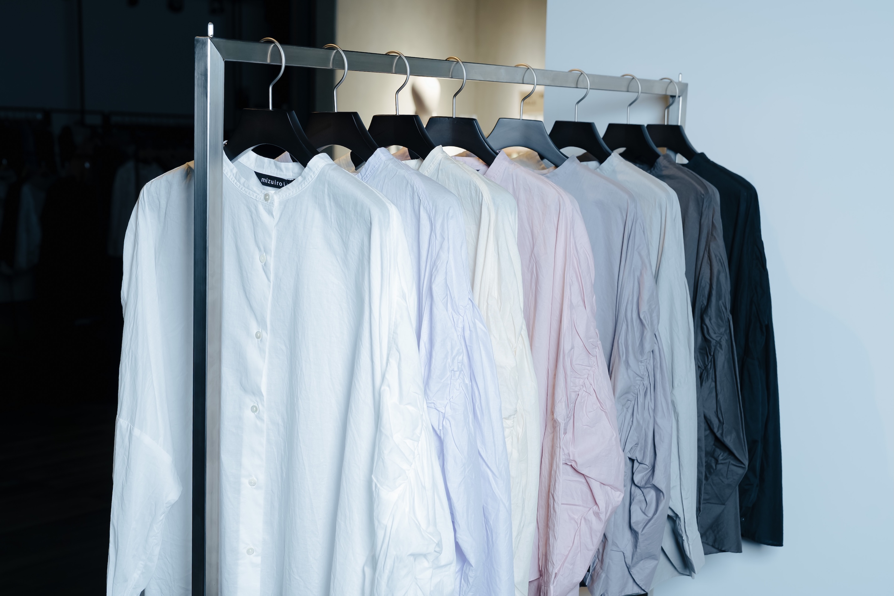 品牌最具代表性的設計包括正面飾有蕾絲的立領寬版襯衫、袖口帶有細緻壓褶的澎袖襯衫,以及背部抓褶設計的寬版襯衫,皆以 100% 棉質製作,不分季節皆可穿著,兼具舒適度與設計感,十分適合作為首次接觸 mizuiro ind 的入門單品。