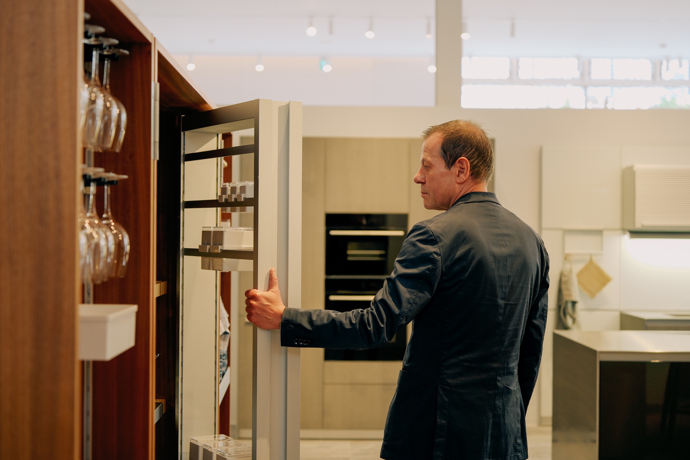 從一個對家常蘋果派念念不忘的小男孩長到大學畢業,前半生有很長一段時間,Marc 斟酌的並非模組化廚具的排列,而是法典字句,「年輕時當律師是訓練自己梳理因果,如果要找個離經商和廚具最遠的人,大概就是我吧。」旁觀者清解釋了當代 bulthaup 的清奇視野,「我想的從來不是研發什麼新板材,而是人們對生活美學與安全感的追求。」