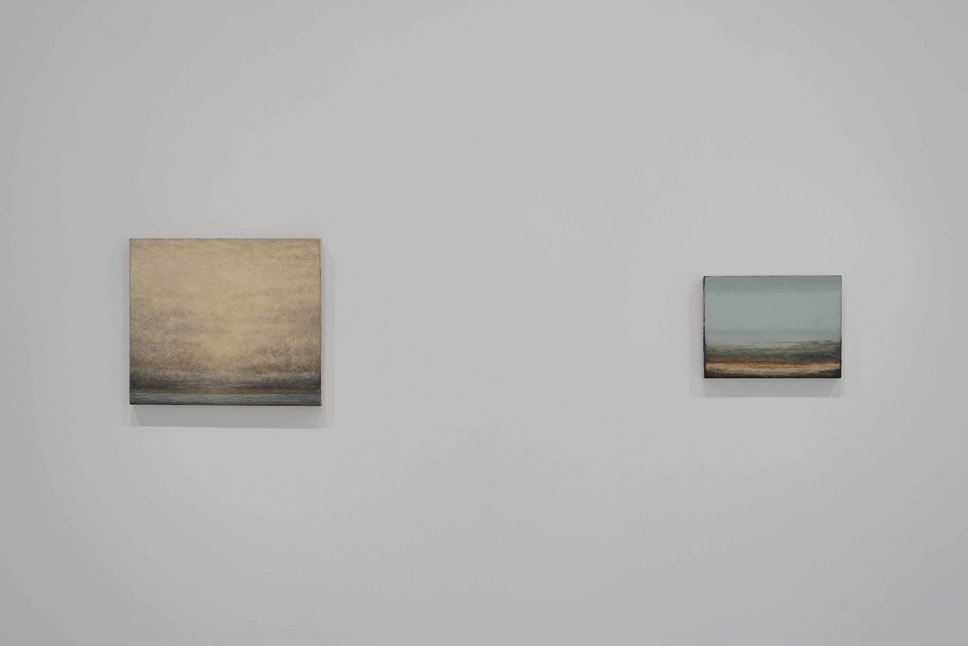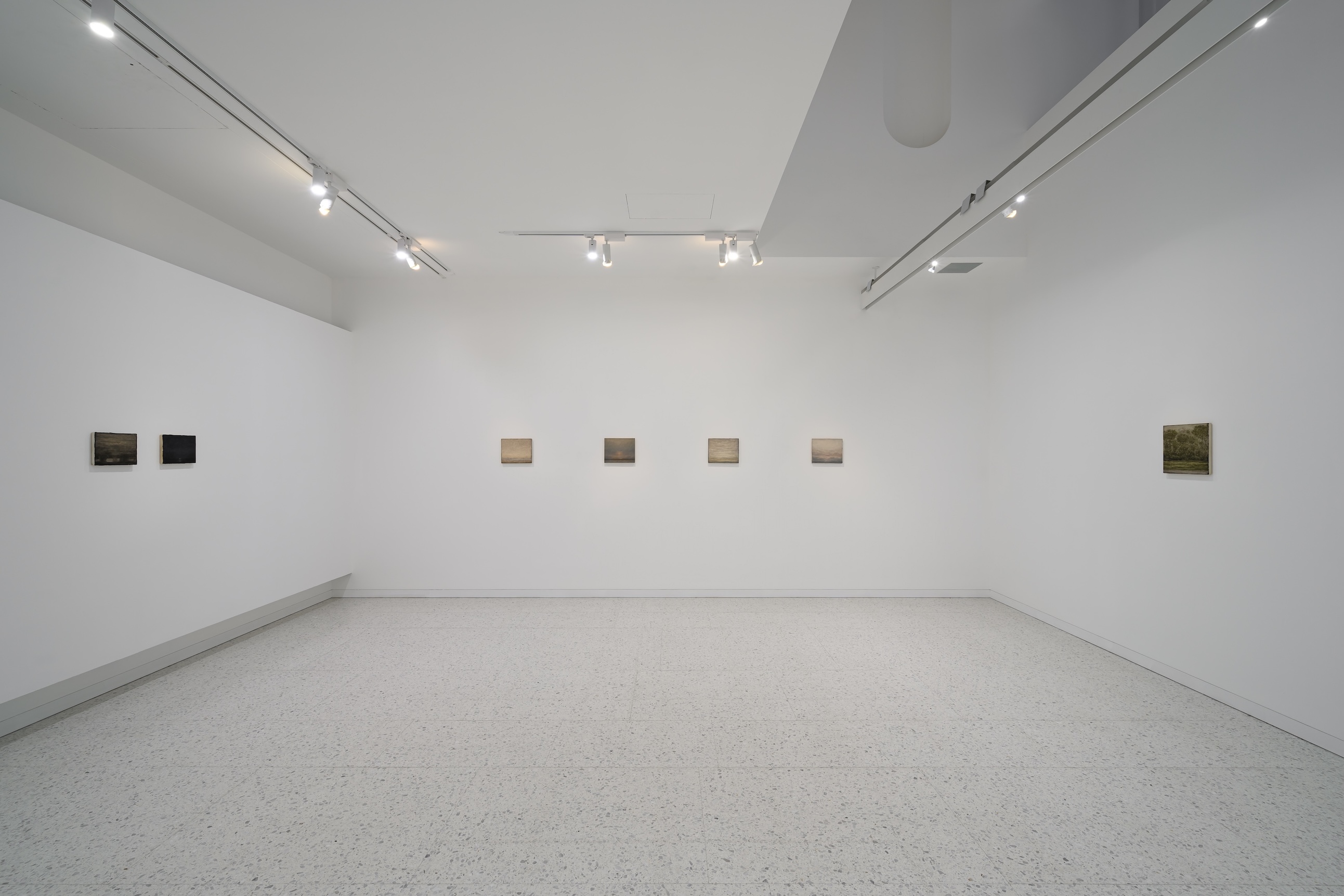 Arruda 的畫面中經常出現幽暗的天空。偶爾有一道極細的地平線,或是一抹幾乎被壓縮成輪廓的森林,那道地平線細得幾乎要消失。幽暗的天空佔據了大部分畫面,留下了一種氛圍,一種狀態,懸在記憶與遺忘之間。儘管沒有直接取自自然,但是「光」在 Arruda 的繪畫中非常重要,也是理解其作品的關鍵。